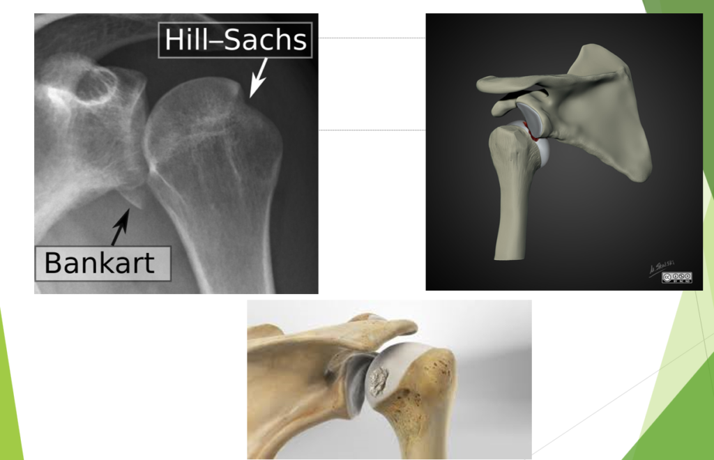 Στην αντίθετη περίπτωση του οπίσθιου εξαρθρήματος έχουμε και την αντίστοιχη βλάβη στην πρόσθια επιφάνεια της κεφαλής του βραχιονίου. Στη περίπτωση αυτή αναφερόμαστε ως Reverse Hill Sachs Lesion.